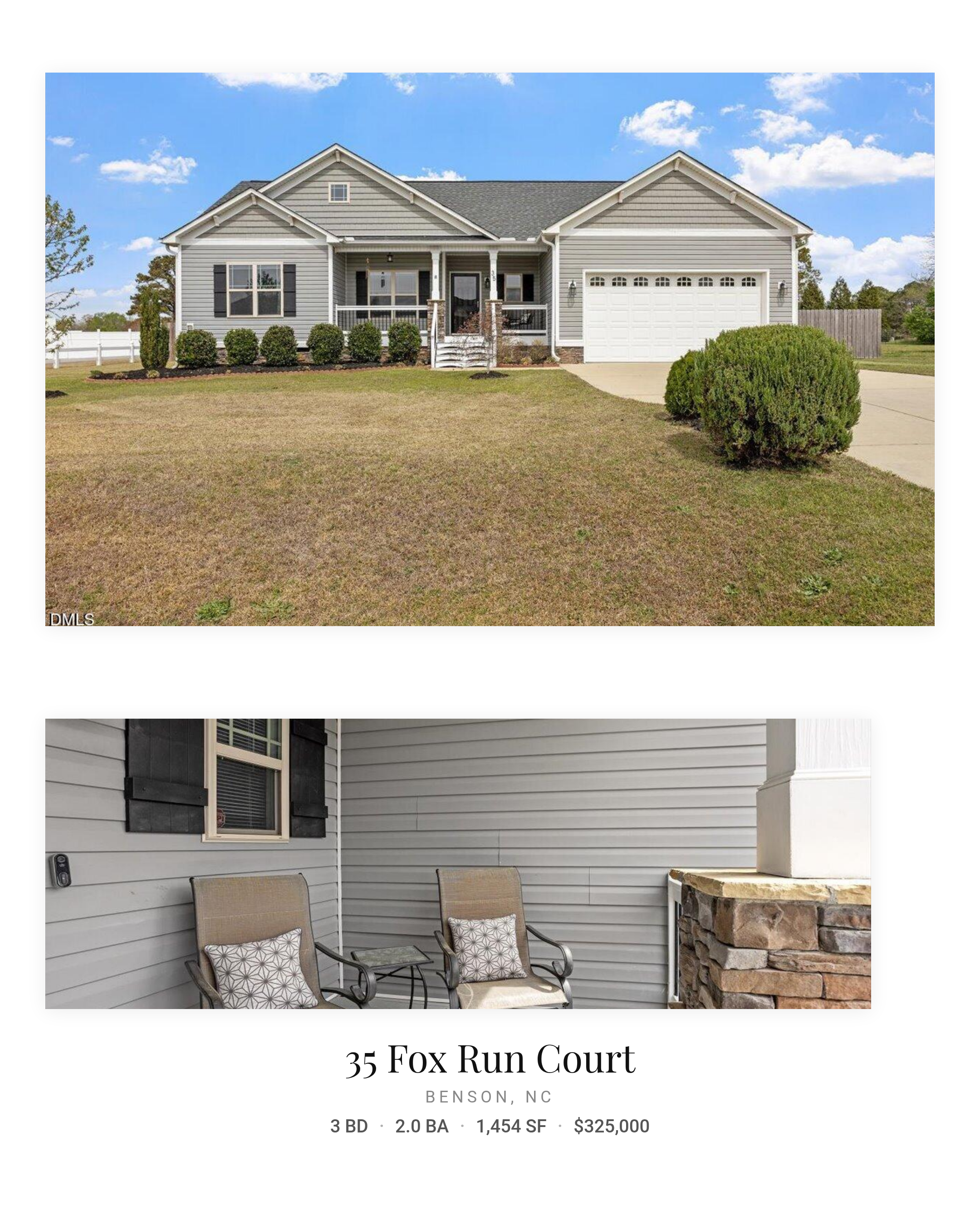 Privacy to unwind. A home that feels right the moment you arrive. Welcome to this beautifully maintained 2015 ranch home nestled in a quiet, established community of just 21 homes--where life moves a little slower, neighbors are close--but not too close--and mature trees offer a sense of comfort you won't find in newer developments. Situated on a generous .50-acre lot, this home features an inviting open floor plan with cathedral ceilings, abundant natural light, and an easy flow that makes everyday living and entertaining feel natural. The split-bedroom layout creates a true sense of retreat, offering privacy so everyone has their own space to relax and recharge. The updated kitchen features a stylish backsplash, stainless steel appliances--including refrigerator, dishwasher, microwave, and range--and a layout that keeps you connected whether hosting or enjoying a quiet night in. The renovated primary suite is designed with both comfort and function in mind, featuring a walk-in shower, grab bars, and the added luxury of his and hers closets, providing ample storage and personal space. An optional garage ramp can remain or be removed to suit your needs. Step outside to enjoy a welcoming covered front porch, perfect for slow mornings with coffee, along with a spacious rear patio ideal for grilling, gathering, and evening conversations. The fully fenced backyard with double gates provides flexibility and function, while a dedicated outdoor fire pit area creates the perfect setting for cozy nights under the stars. A 10x20 wood utility building with extra height, metal roof, electricity, and double doors offers space for hobbies, storage, or projects. Additional highlights include a 2-car garage and a peaceful setting that feels tucked away--yet is just minutes to Benson, Dunn, McGee Crossroads, and I-40, making commuting to Raleigh or Fayetteville simple and convenient, with easy access to shopping and dining. Recent updates include new carpet and a water heater, both replaced in 2023. This is more than a home--it's a place to settle in and truly enjoy where you live.